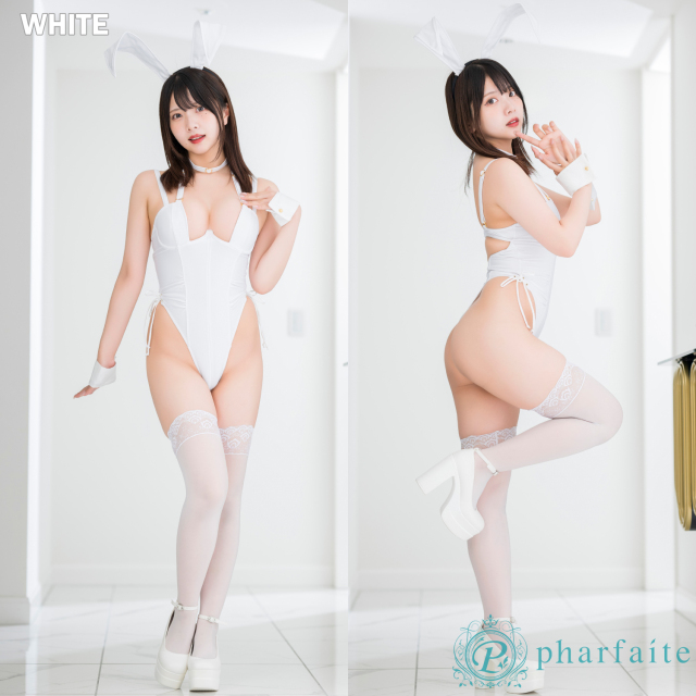 バニーコート風の切替えと大胆なハイレグカットで、脚長効果とフェティッシュな魅力を両立。