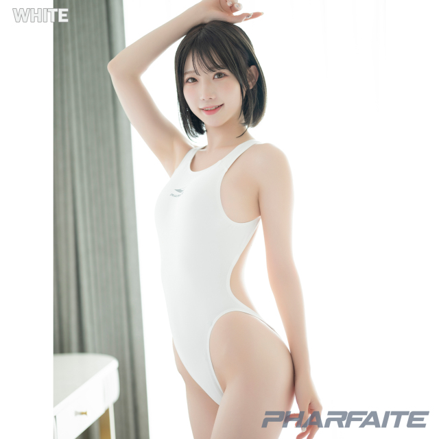 ヒップ側は脚の付け根を大きくカットしたハイレグラインで、腰位置を高く見せながら、すっきりとしたバックシルエットを描きます。